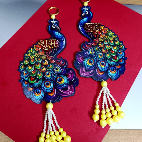 Peacock Design शुभ लाभ Hanging with Bead...