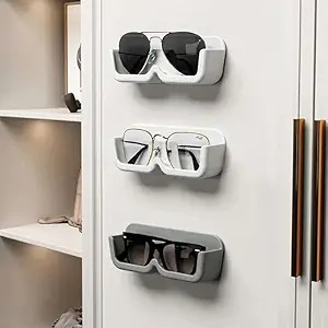 Keep your specs and sunglasses safe, organized, and easily accessible with this 2-piece wall-mounted holder.