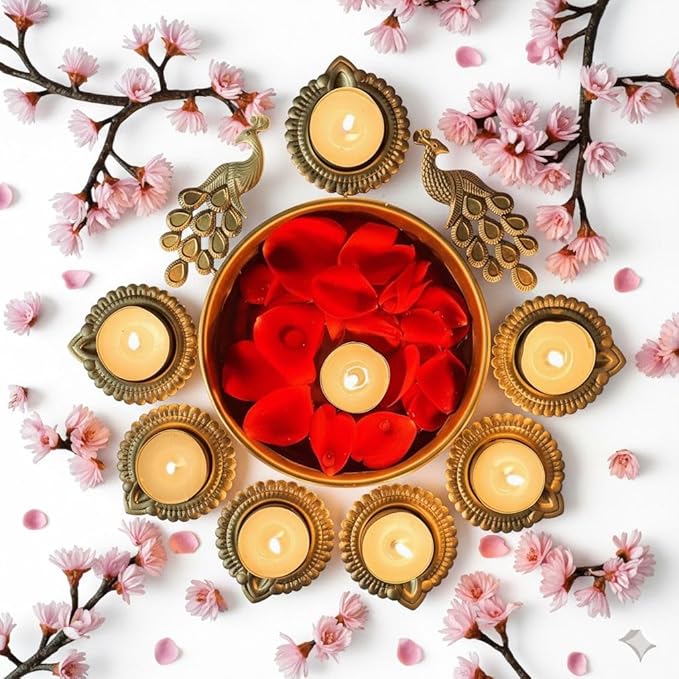 Flower Shape Diya Bowl – Decorative Bowl with Tealight Candles(Diwali & Pooja Needs for elegance look)