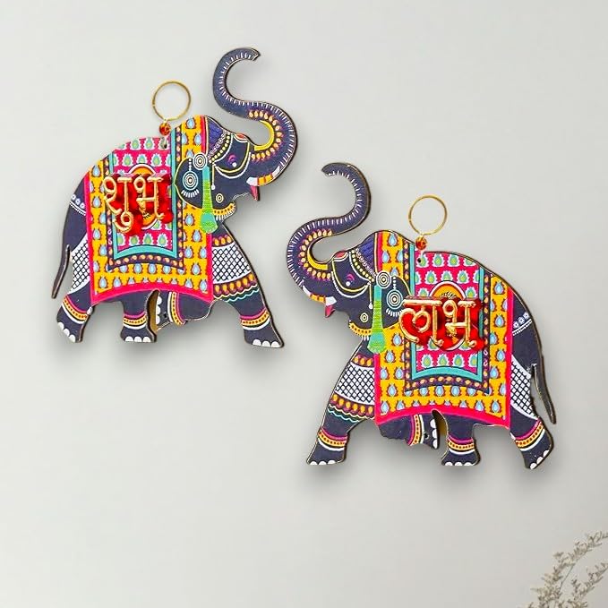 Bring traditional charm to your home with this Handcrafted Rajasthani Door/Wall Hanging featuring vibrant elephants and bells. Perfect for home décor, Diwali gifting, and festive celebrations.