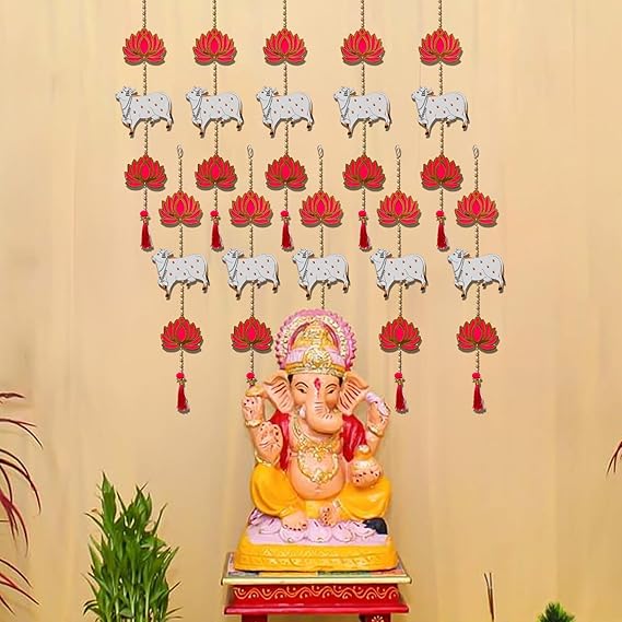Lotus Cow Tassel Hanging for Diwali, Ganesh Chaturthi, Navratri| Set of 6
