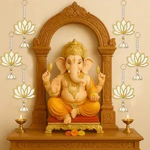 Add a touch of elegance and tradition to your home with this Lotus Wall Decor Pack of 6 Handmade Jhumki Hangings. Perfect for home décor, temple decoration, festivals, weddings, and special occasions, these beautiful hangings bring a vibrant and festive charm to any space.