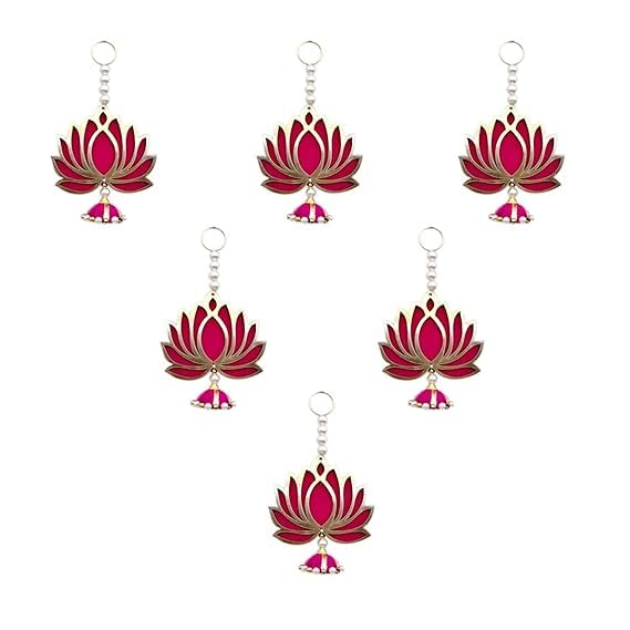 Beautiful Lotus Wall Hanging Set of 6 (Pink) crafted from engineered wood with jhumki design. Perfect for pooja rooms, temples, Diwali, and traditional home décor.