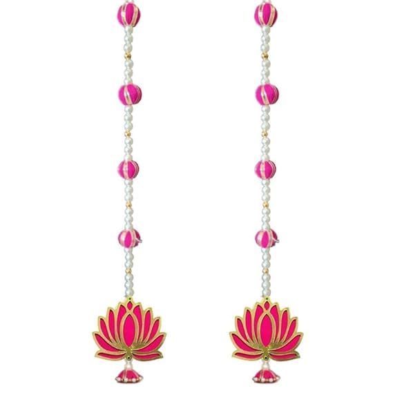 Elegant Lotus Wall Hanging Decorative Jhumka in pink, perfect for enhancing your home décor, temple, or pooja space. Comes in a pack of 6, adding charm and traditional vibes to any occasion.