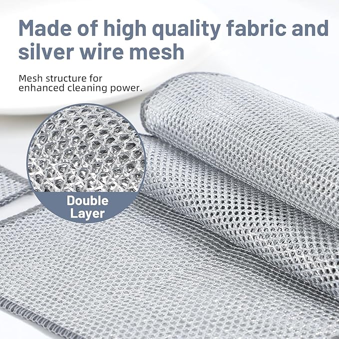 Non-Scratch Wire Dishcloth – 12 Pack Double Layer Silver Mesh Cleaning Cloths for Kitchen