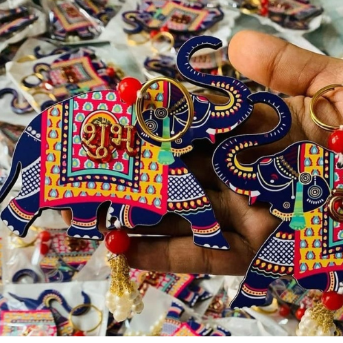 Finished with yellow bead tassels, this piece is lightweight, reusable, and easy to hang on doors, walls, pooja rooms, and mandirs. A thoughtful and auspicious choice for wedding/pooja return favors.