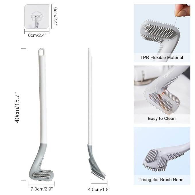 Silicone Toilet Cleaning Brush with Long Handle & Hook