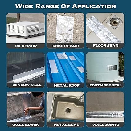 Seal leaks instantly with our heavy-duty waterproof tape. Designed for roofs, pipes, walls, and outdoor surfaces. Silver color finish for neat and durable repairs.